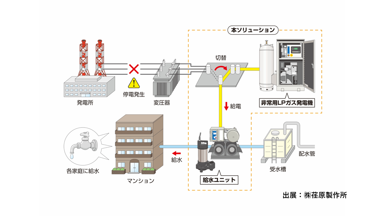 停電時でもLPガス発電機で給水、排水するソリューションの提供を開始