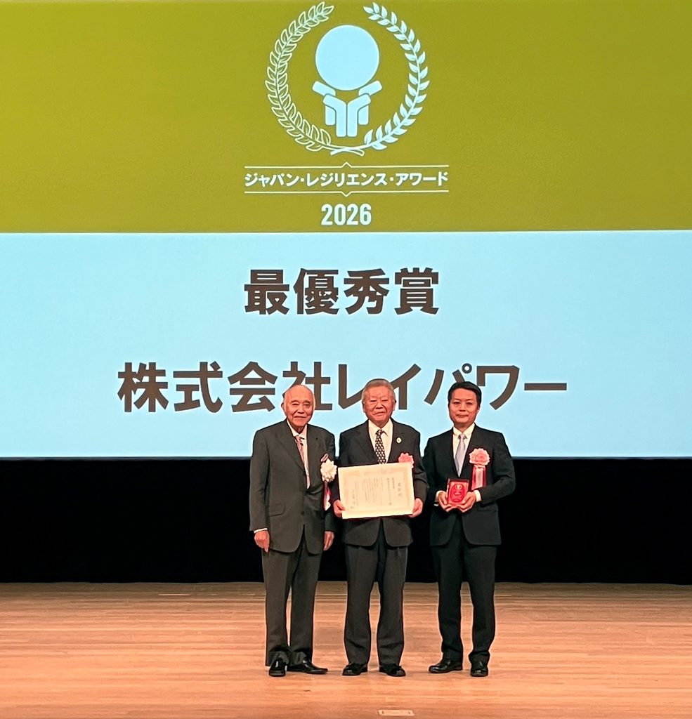 株式会社レイパワー(代表取締役社長:立川計、本社:東京都千代田区)は、「第12回ジャパン・レジリエンス・アワード」において最優秀賞を受賞したことをお知らせします。